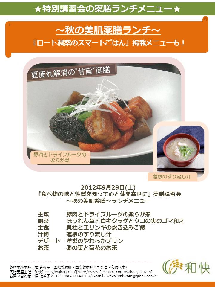 薬膳ランチメニューを掲載!特別薬膳講習会開催のお知らせ★9月29日(土)11:00~14:00@原宿(神宮前)★