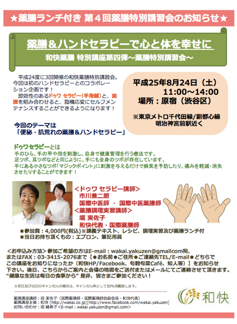 薬膳講座主催:和快[http://wakai.co.jp][http://www.facebook.com/wakai.yakuzen]