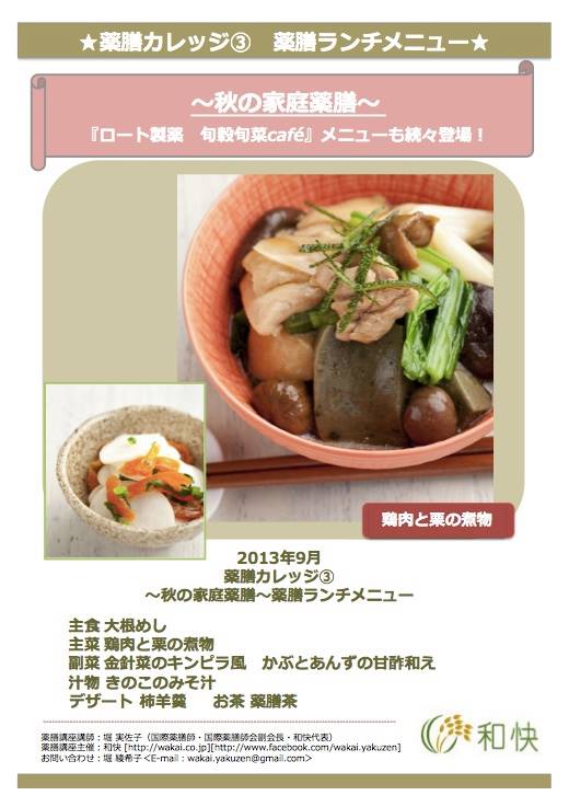 薬膳ランチ付き!薬膳カレッジ③開催のお知らせ★9月28日(土)11:00~14:00@成城★